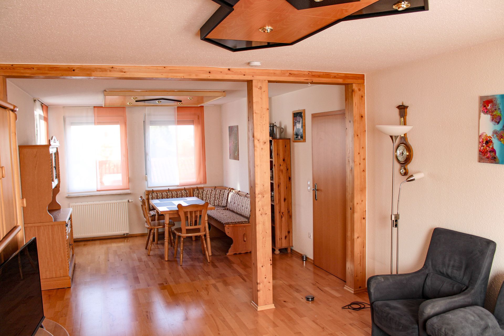 Die Ferienwohnung befindet sich im Obergeschoss eines Einfamilenhauses.