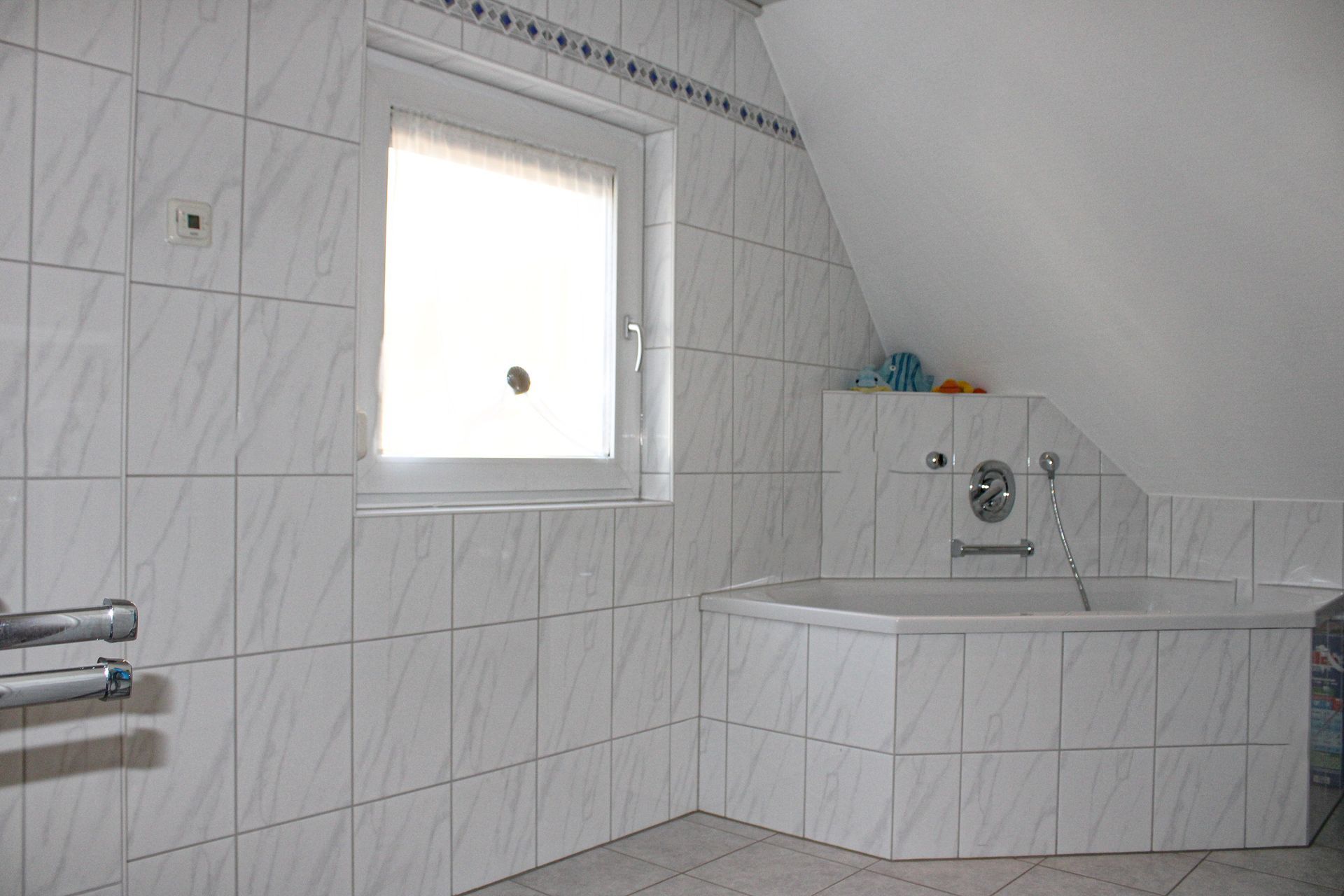Dachgeschoss: 3 Einzelzimmer, Bad mit WC, Dusche und einer Badewanne.